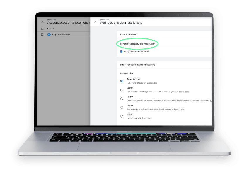 We have heard from nonprofits that setting up Google Analytics can be difficult, so we created the following guide to help make it easier for you to get everything set up. Simply follow the steps provided and then share access with our team once completed.