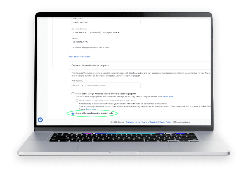 3. Check “Create a Universal Analytics property”.