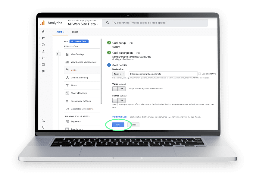 8. Once your destination goal verifies, click SAVE.